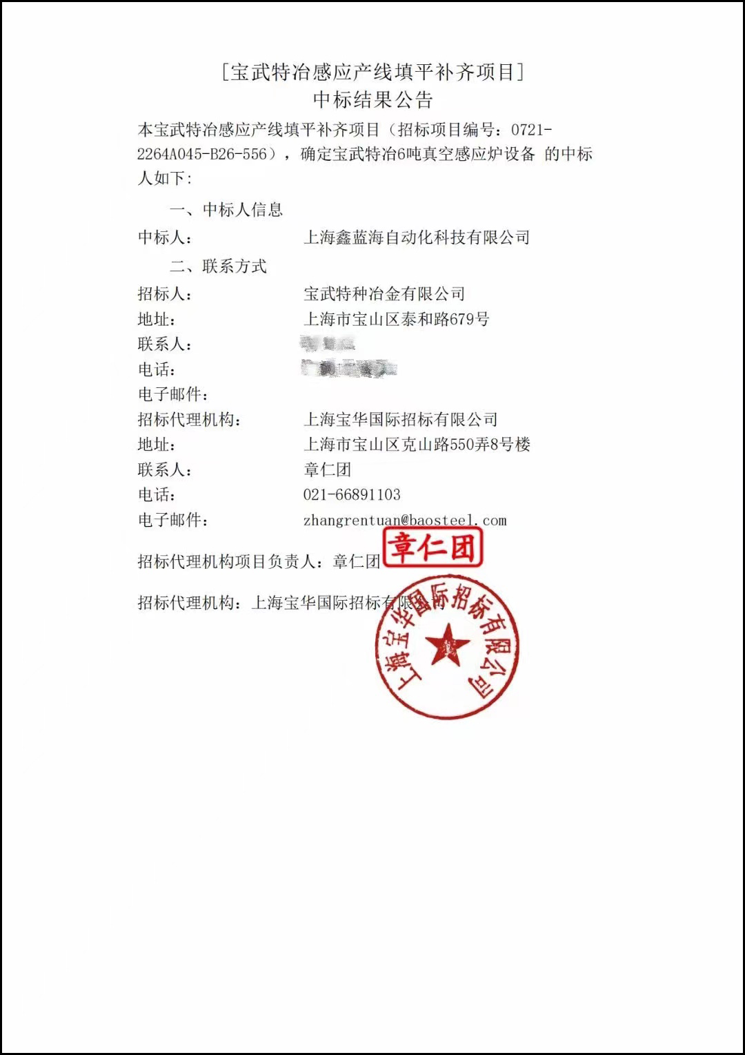 近日,鑫藍海在寶武特冶感應產(chǎn)線填平補齊項目特冶6噸真空感應爐設備采購招標競標中,憑借過硬的產(chǎn)品質(zhì)量、嚴謹高效的工作作風、卓越的經(jīng)營團隊和優(yōu)質(zhì)的售后服務,中標寶武該項目特冶6噸真空感應爐設備。